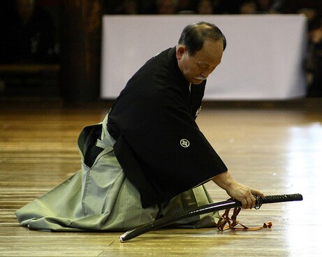 Nella pratica della spada ci si imbatte subito in una serie di saluti, inchini … etc, che definiamo etichetta o in giapponese reiho. Tutto ciò non sono semplici saluti o come abbiamo detto etichetta, è qualcosa di profondamente diverso da una mera forma cerimoniale, è qualcosa che ci prepara alla pratica, in esso sono condensati educazione, rispetto, buone maniere, onore, l’abbadono del mondo esterno, ci si libera la mente da tutti i problemi quotidiani e non, ci prepariamo a far scorrere l’energia interiore, si attiva hara e diventiamo un tutt’uno con l’energia universale.